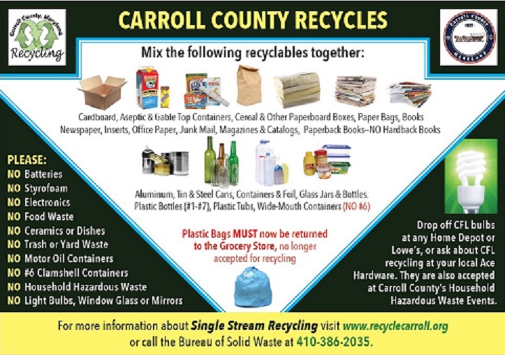 For a complete recycling information go to the Carroll County Recycling website. The Town recycles through Carroll County.